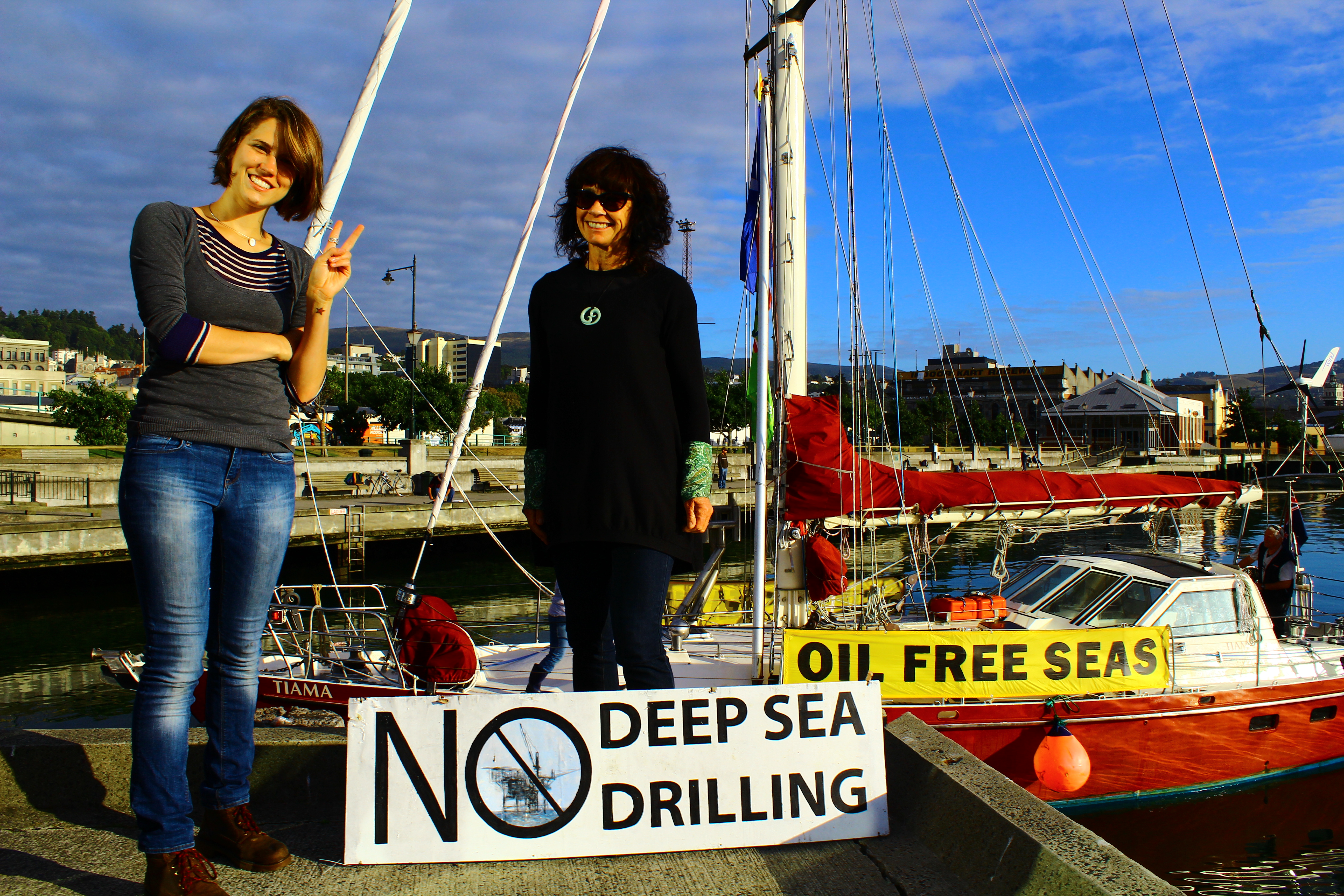 Tiama skipper, Henk Haazen, is a verteran sailor/activist. He has sailed in many protests at sea over the decades, including against nuclear testing in the Pacific, and deep sea oil drilling in New Zealand in the flotilla against Petrobras in 2010, and most recently in the Oil Free Seas Flotilla against Anadarko’s drillship, the Noble Bob Douglas in Raglan at the end of 2013.